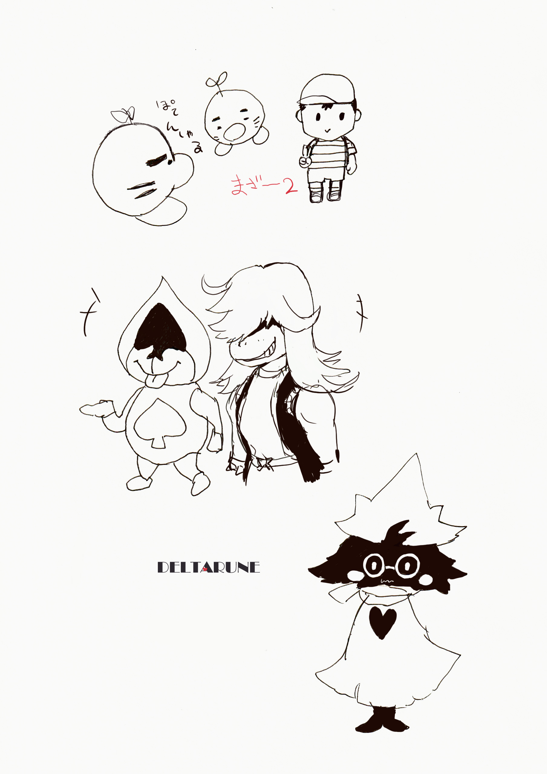 DELTARUNEチャプター1をクリアした後に描いたものですけどなぜかマザー2のキャラも。